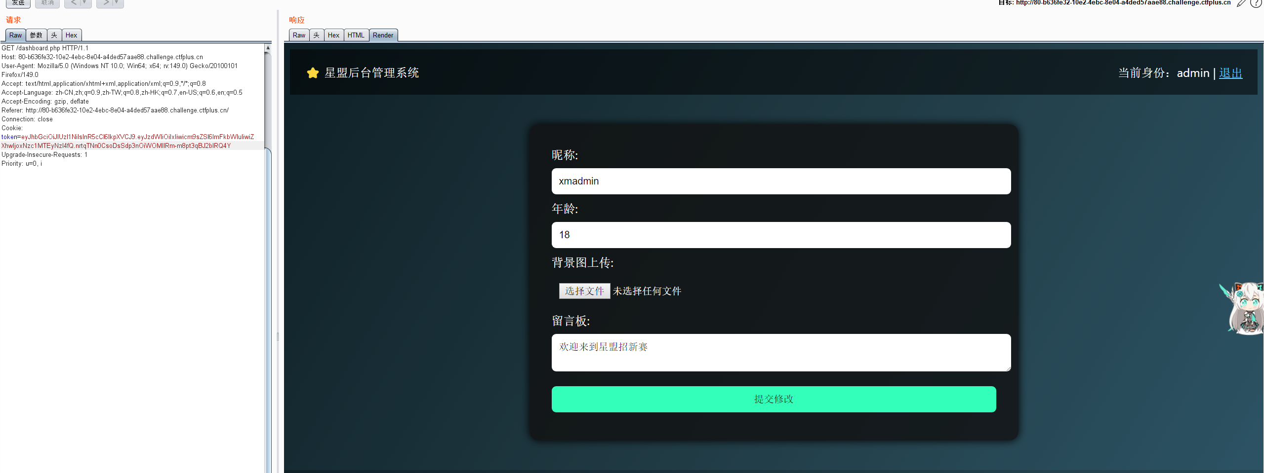 同上一题思路一样,用图片马尝尝咸淡,抓包再改回php,同时把伪造JWT传上