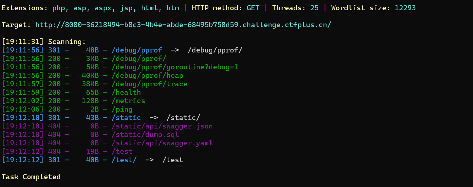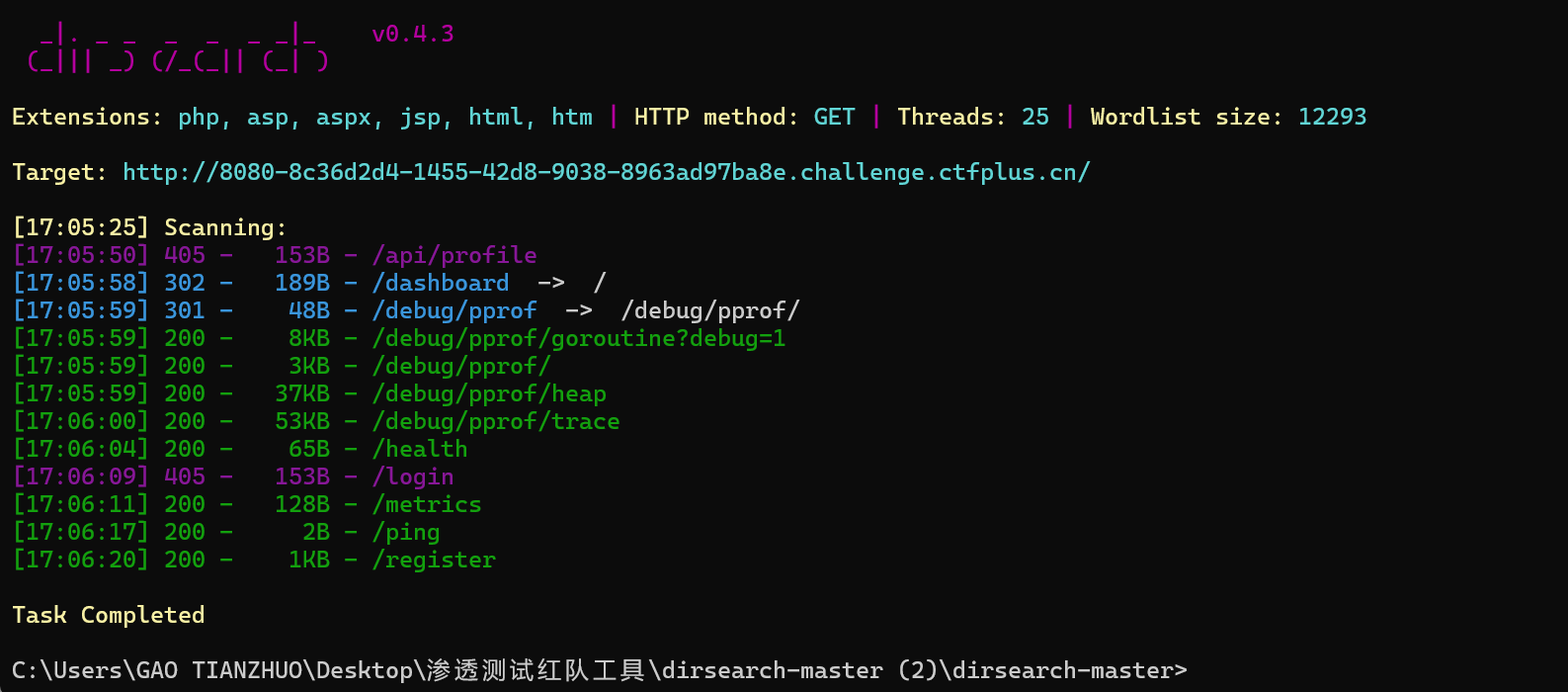 用dirsearch扫描1>发现网站的后端很可能是 Go 语言写的,因为pprof是GO程序常见的性能分析/调试工具简单说,开发者本来是拿它来: